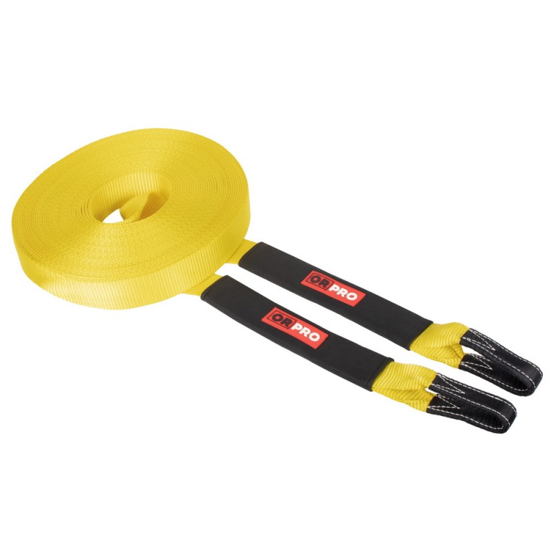 Удлинитель выполнен из прочной полиэстеровой ленты шириной 60 мм с разрывной нагрузкой 10000 кг и длиной 30 метров. Полиэстер практически не тянется и не накапливает кинетическую энергию, благодаря чему исключается эффект "выстрела" при работе под нагрузкой. Это делает его безопасным и предсказуемым инструментом при эвакуации автомобиля.