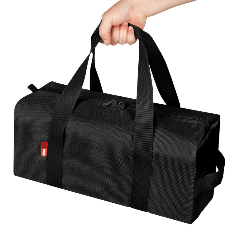 Сумка размером 450х200х200мм отлично подойдет для эргономичного размещения такелажных принадлежностей: строп, удлинителей тросов, корозащитки, цепей и прочего такелажа. Это очень умное решение, защищающее салон авто от лишней грязи и позволяющее не искать необходимые аксессуары разбросанные по всему багажнику. Кроме того, универсальная сумка ORPRO оснащена двумя внутренними карманами для более мелких аксессуаров в виде шакла, дефлятора, фонарика или перчаток.